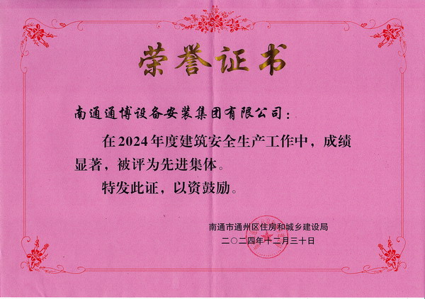 集團(tuán)公司榮獲通州區(qū)住建局2024年安全生產(chǎn)集體